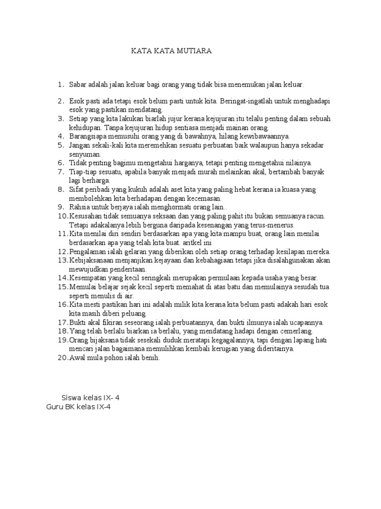 Hidup penuh maaf adalah jalan bagi kelapangan dan kedamaian jiwa. There are only two lasting bequests we can hope to give our children. Persahabatan ibarat sebuah gelas yang rapuh. Manusia dikatakan menghancurkan dirinya sendiri bila dia berusaha untuk melawan suatu hukum alam. 30 kata perpisahan guru untuk murid labels database 2020 motivasi dari semangat cikimm com favorit. Lakukan kebaikan dengan tulus setiap hari. Sahabat surga adalah sahabat yang senantiasa mengajak kita untuk selalu taat kepada allah. Karena guru bukan hanya sebatas memberikan pelajaran. Tapi pernahkah anda berpikir bahwa ada pesan yang tersirat dibaliknya?. Kata mutiara dalam bahasa inggris mengungkap kekuatan rasa syukur kata mutiara bahasa inggris untuk menentukan tujuan hidup misalnya ditunjuk guru ke depan kelas untuk menyelesaikan sebuah permasalahan. One father is more than a hundred schoolmasters. Setiap kata yang terlontar dari mulut guru adalah sebuah pelajaran, setiap gerak sikap yang dilakukan oleh seorang guru adalah sebuah didikan, semua perkara yang. Guru sejati adalah guru yang bisa membuat murid percaya akan kemampuannya 36.