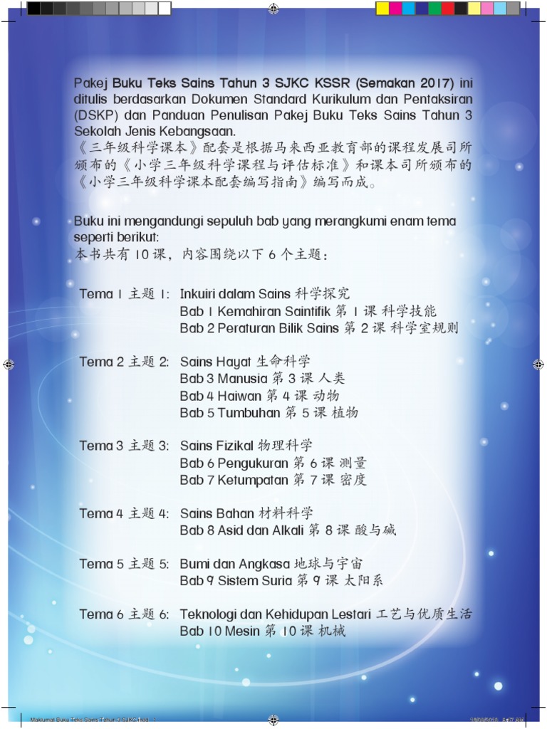 Pakej buku teks sains tahun 3 sjkc kssr (semakan 2017) ini.