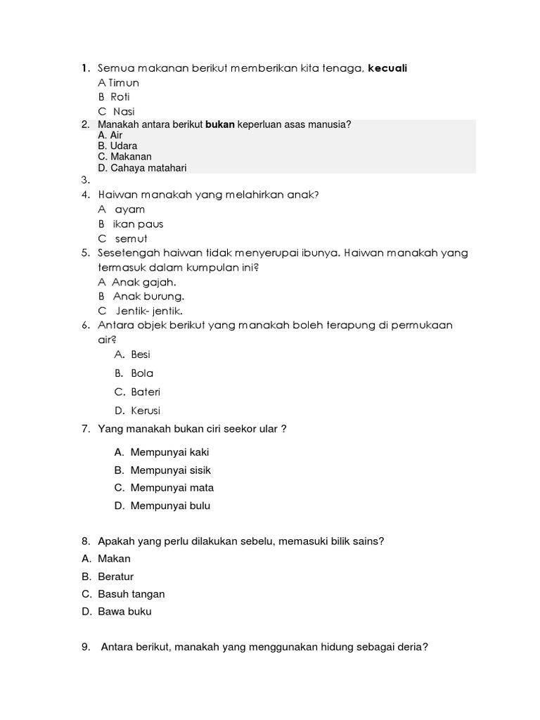 Related : Contoh Soalan Sains Tahun 1 - Soalan sains tahun 1 pksr1..